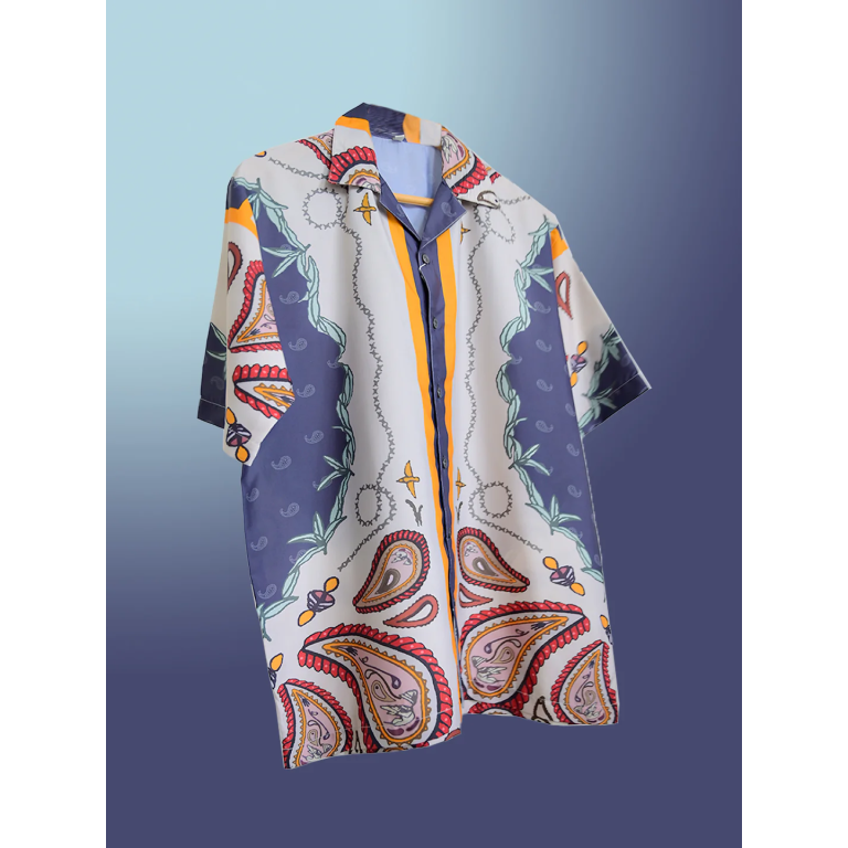 Boho Front-Back Printed Oversized Multicolor Crepe Shirt