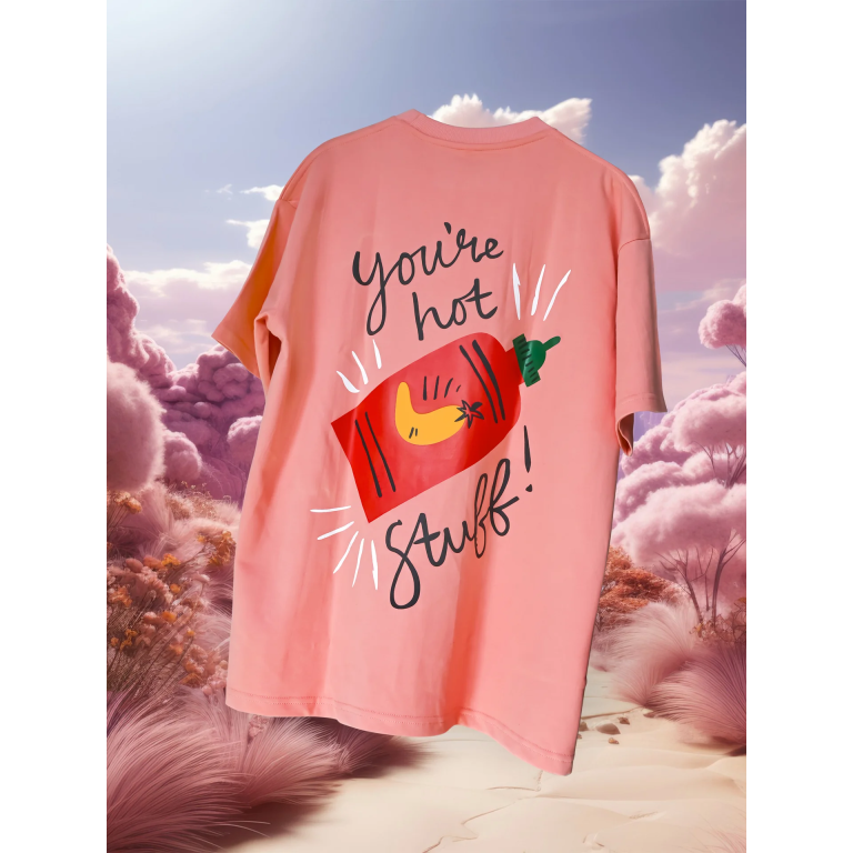 Peach You are Stuff Printed Half Sleeves Oversized T-shirt