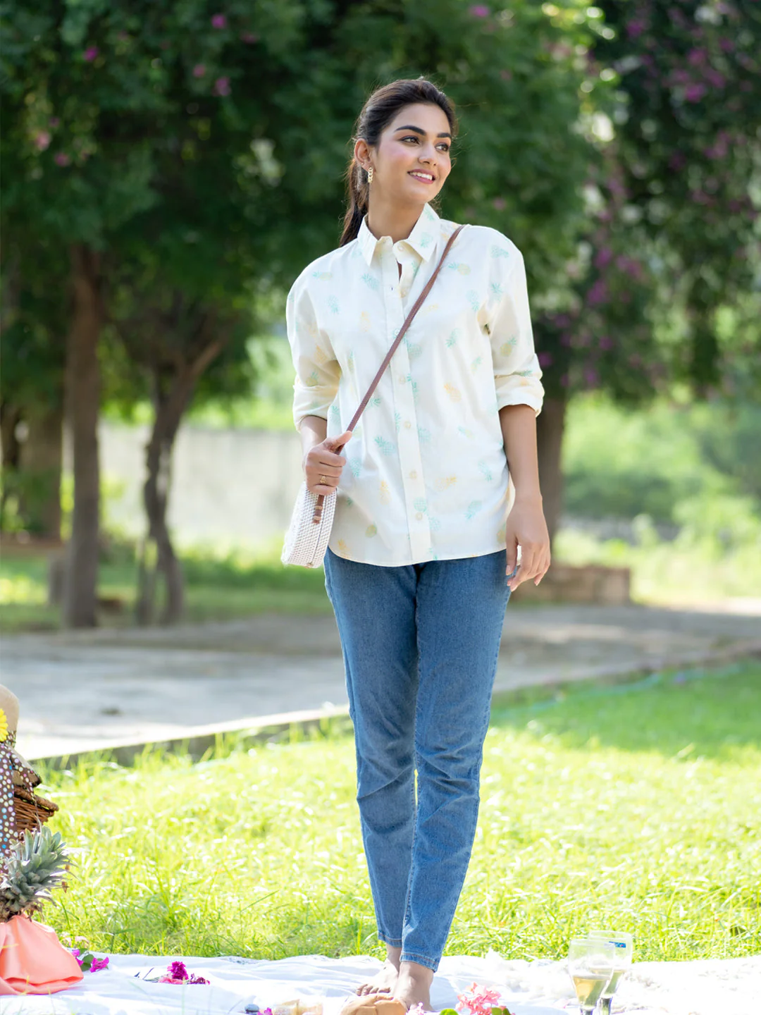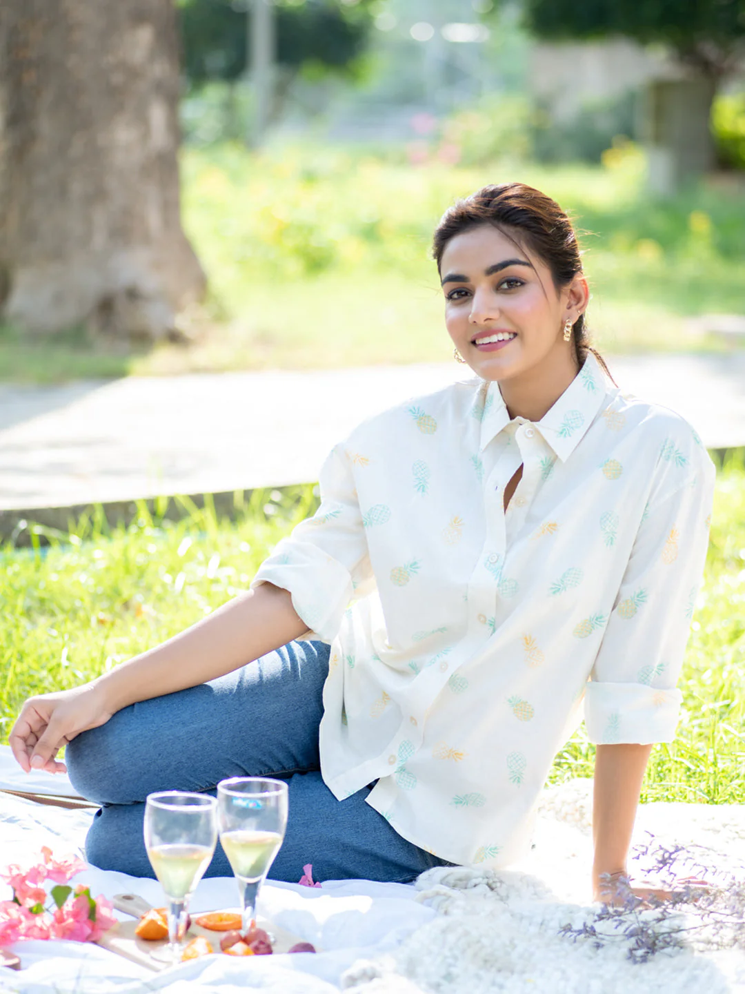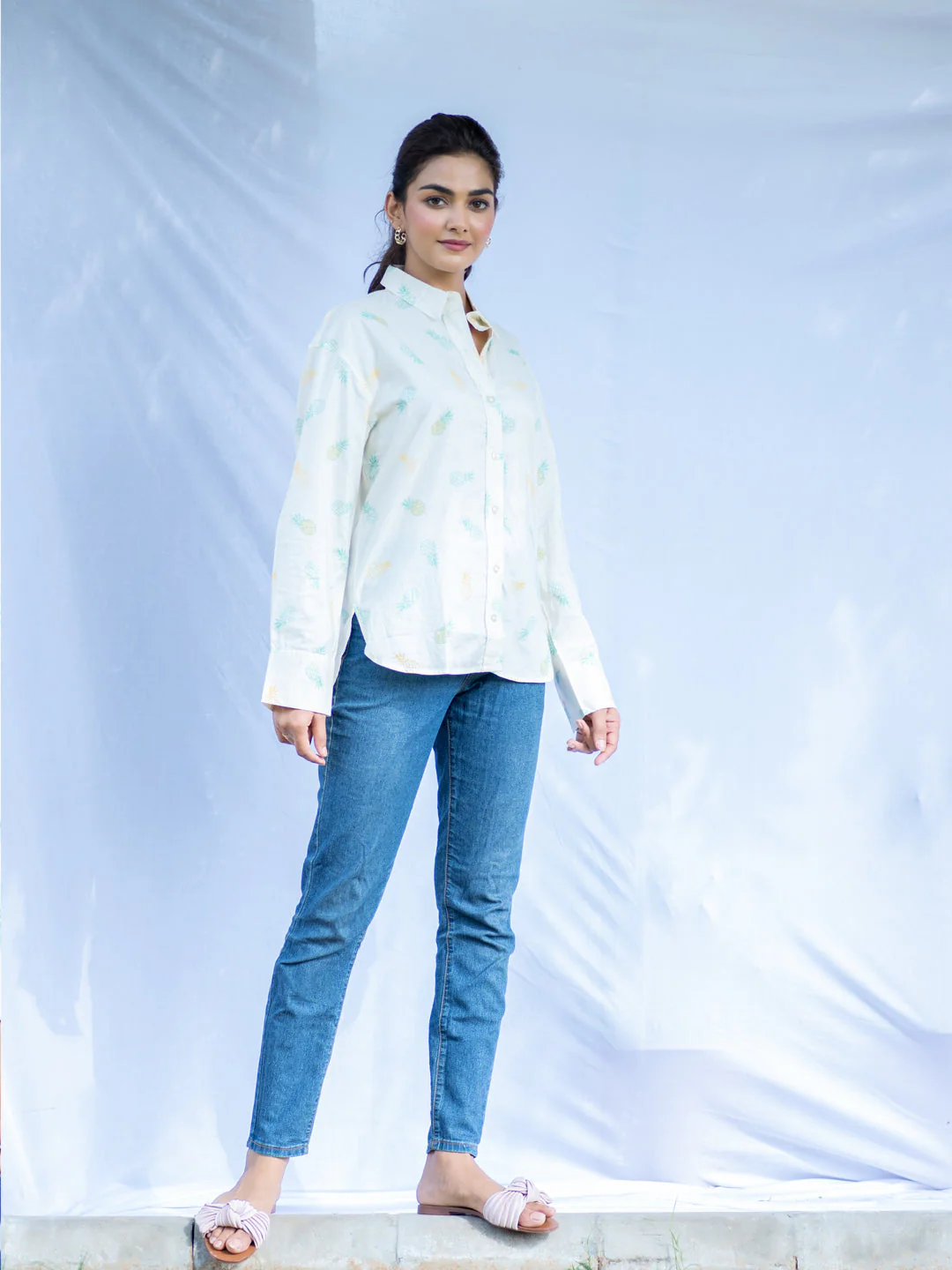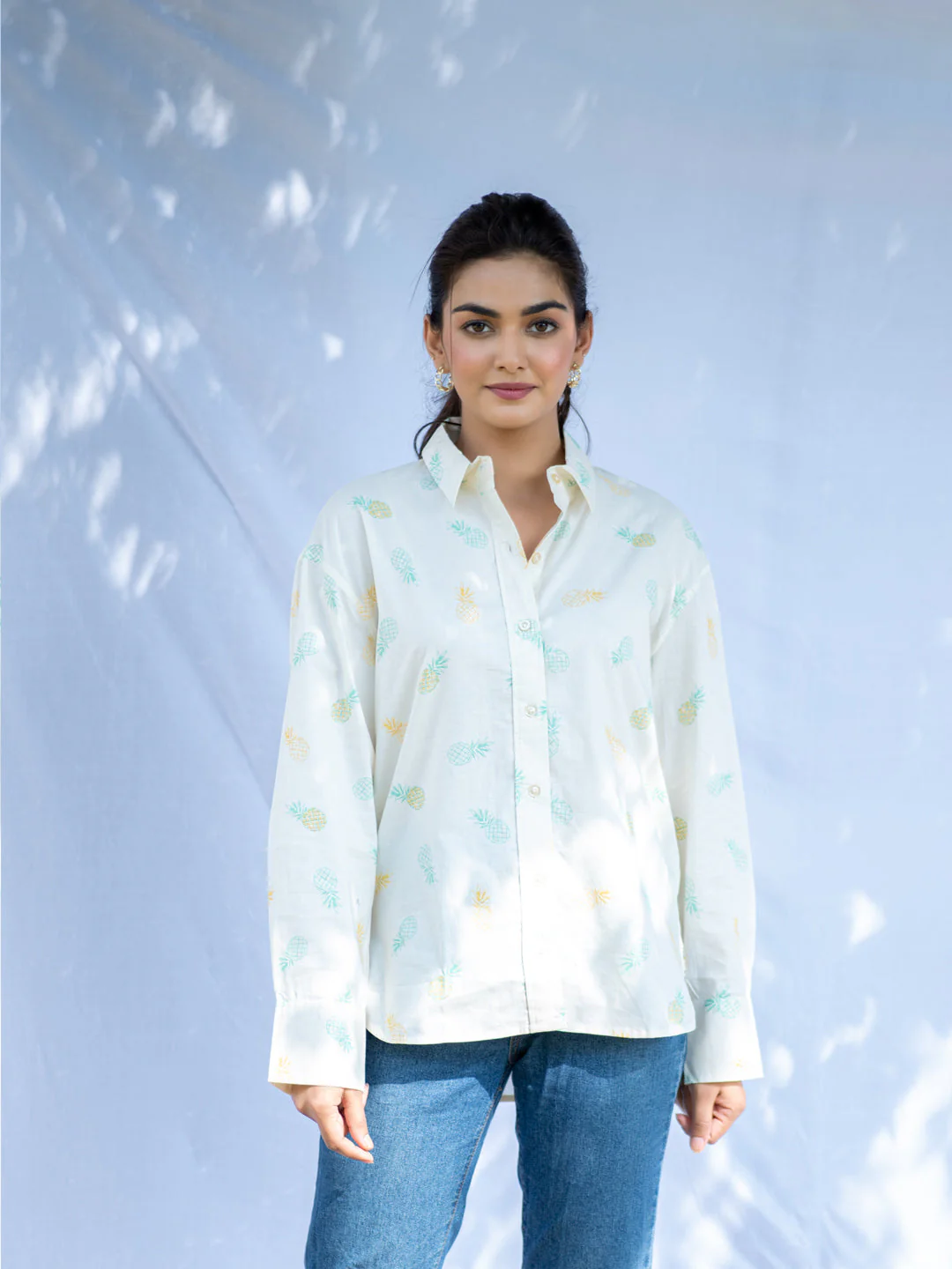 Pineapple Printed Oversized Shirt For Women